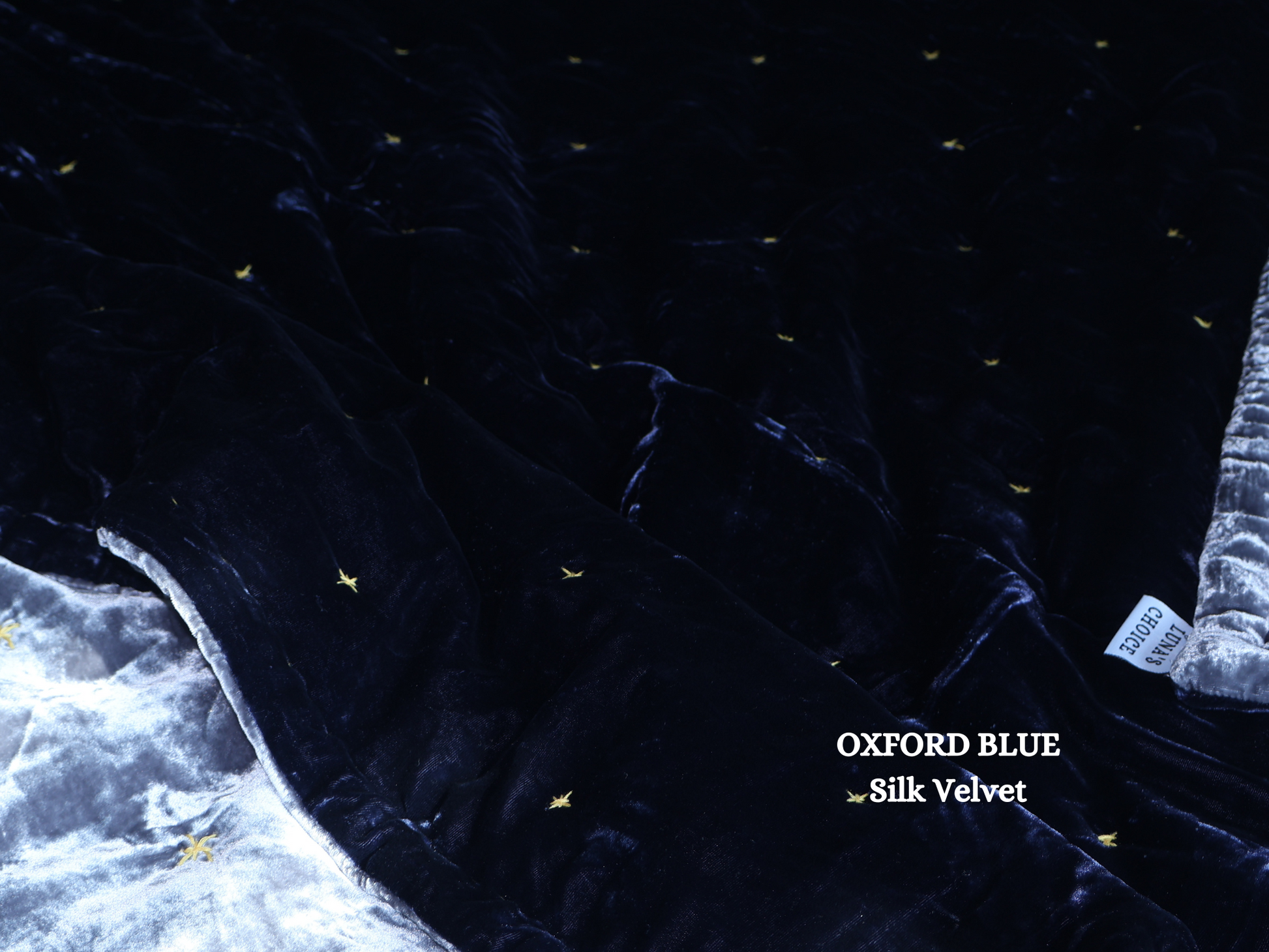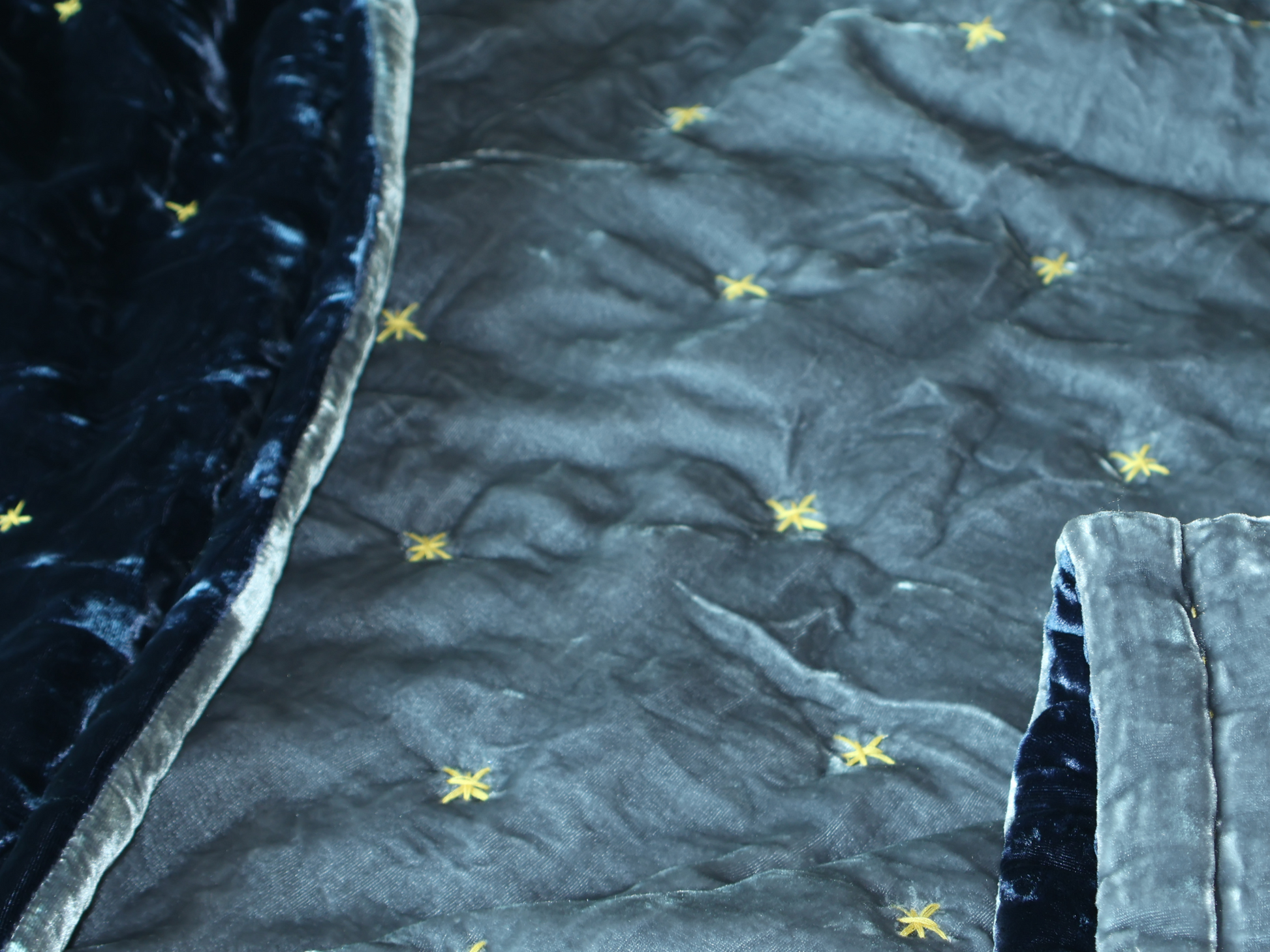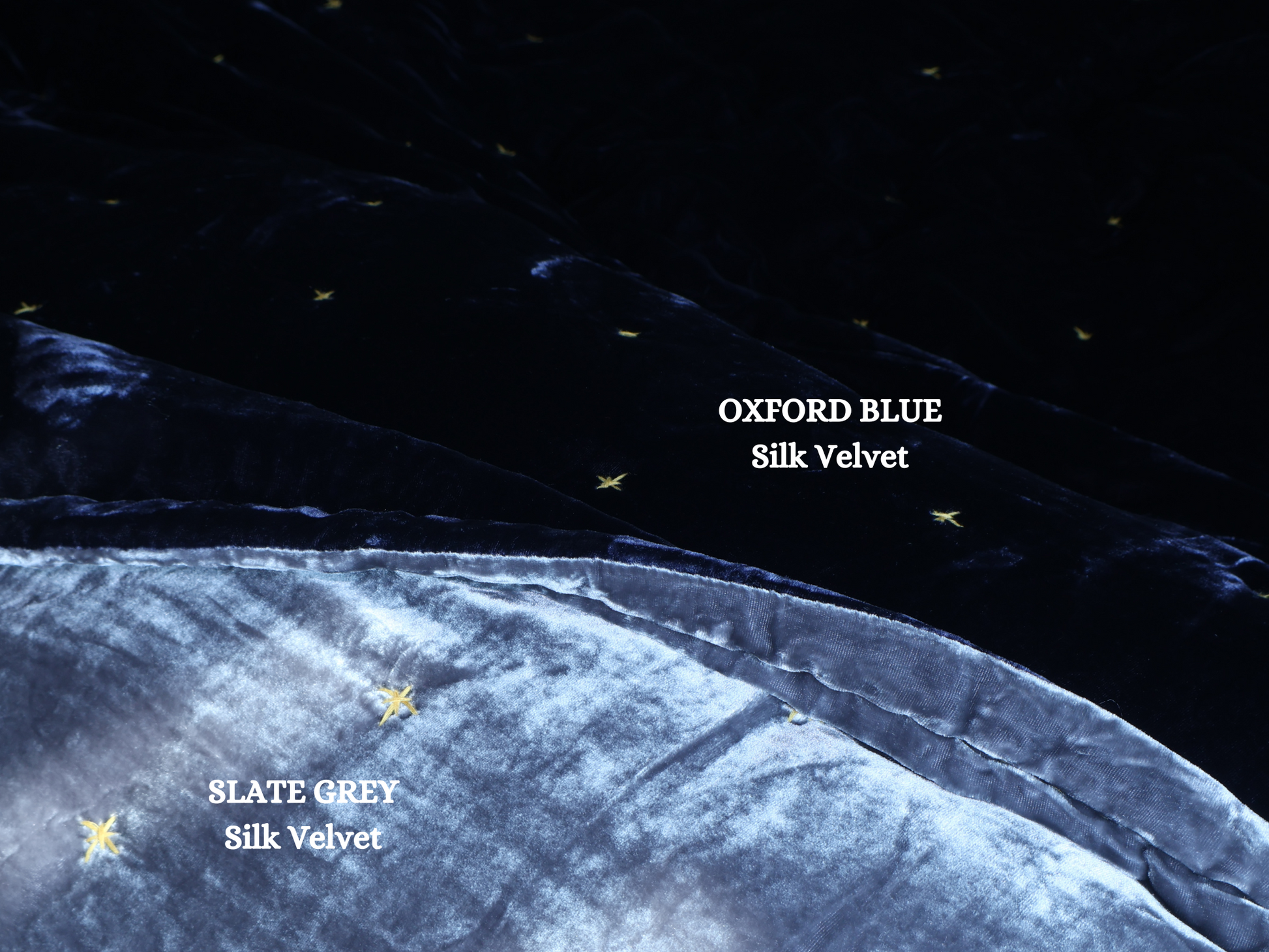 Oxford Blue silk velvet and Slate Gray silk velvet Quilt - Starry Pattern