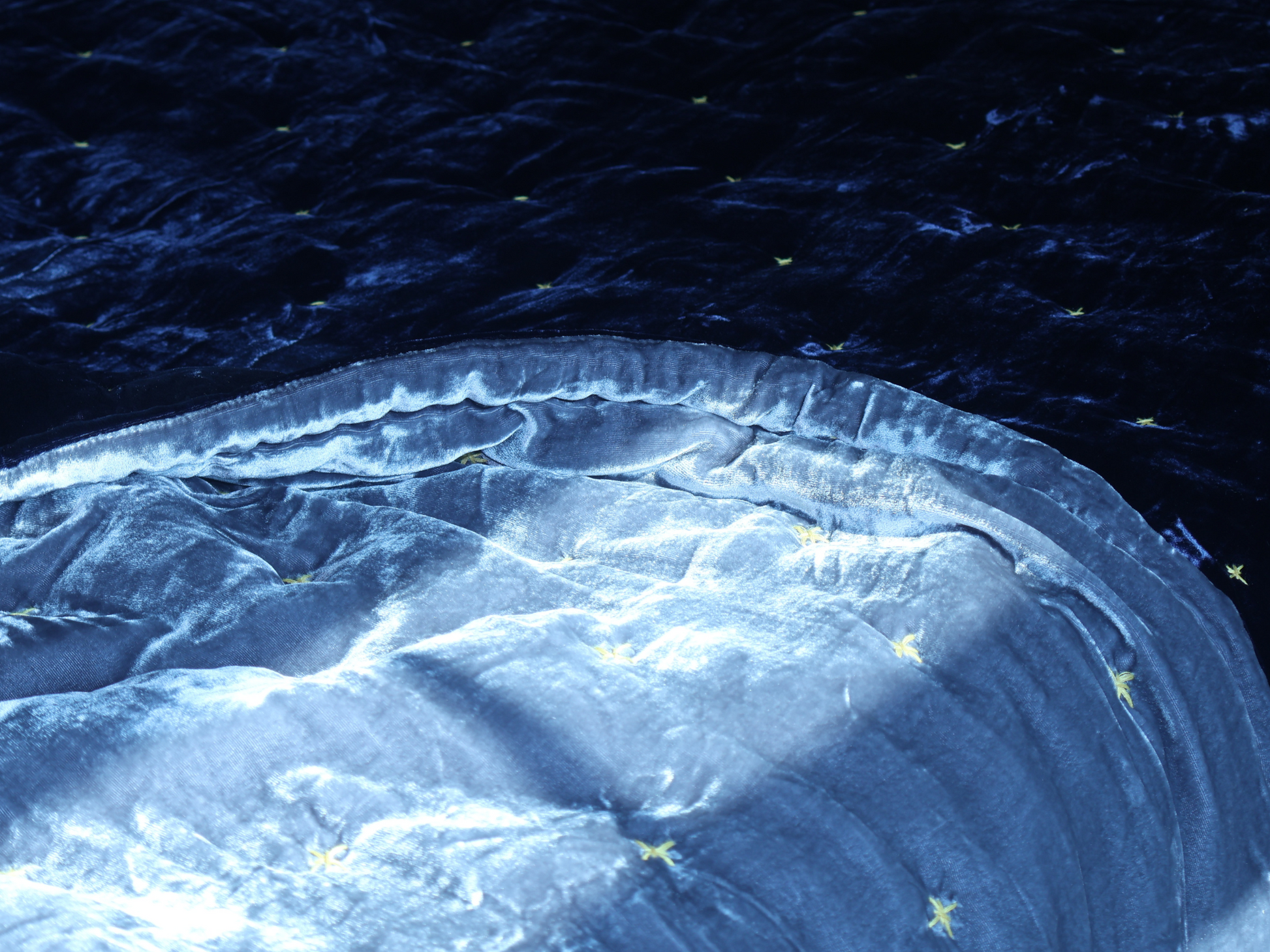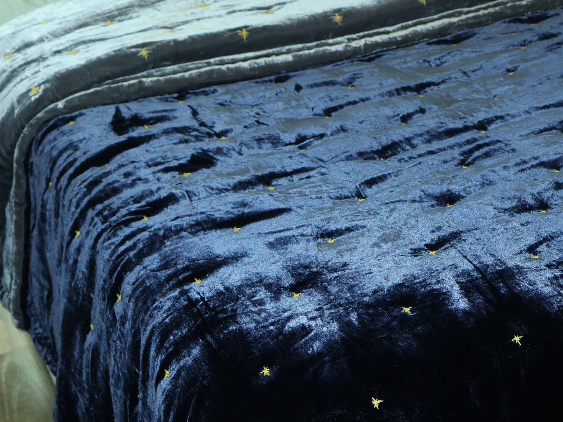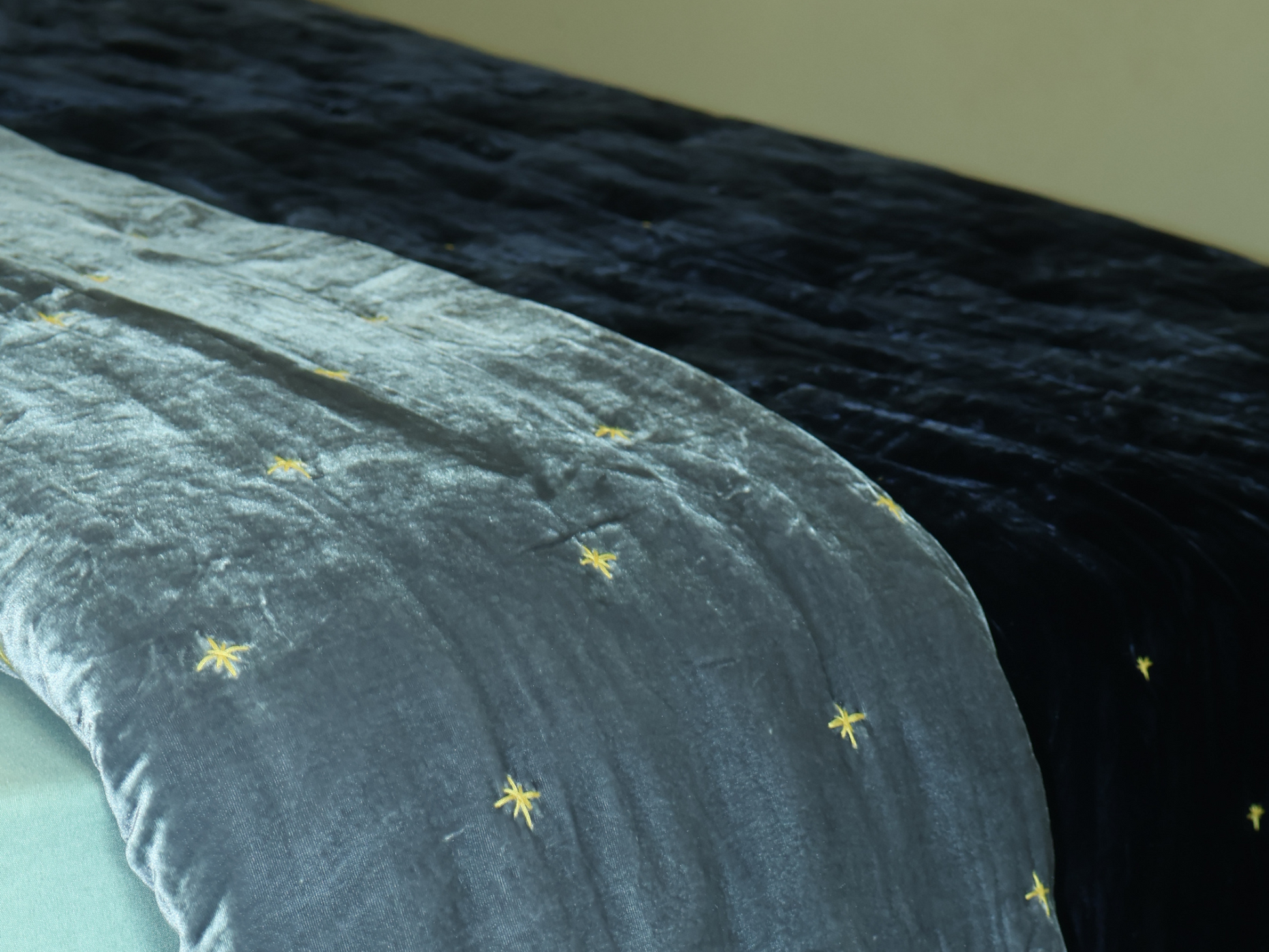 Oxford Blue silk velvet and Slate Gray silk velvet Quilt - Starry Pattern