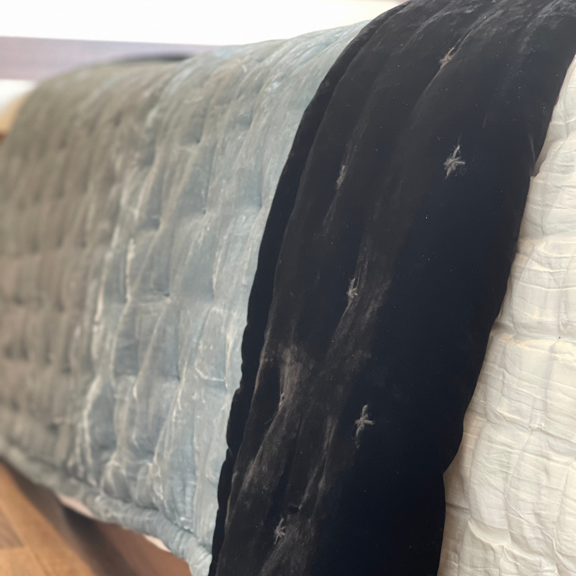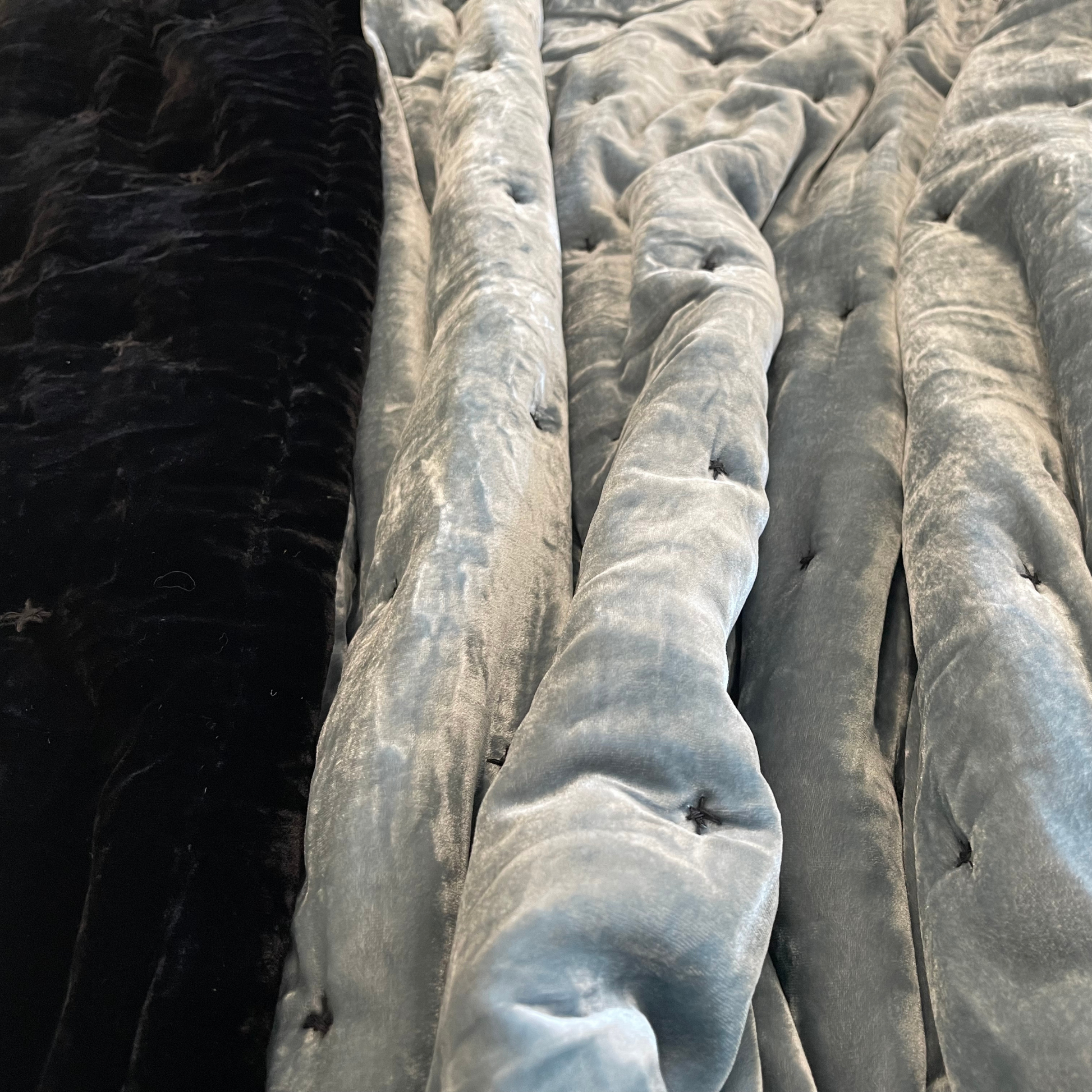 Silk Velvet Bedding Set - Black silk velvet and Pewter Blue silk velvet